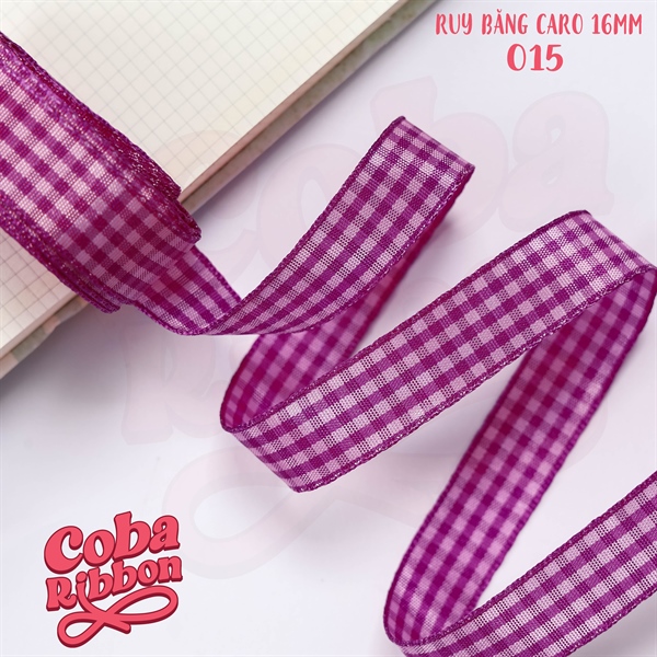 Rộng 16mm - Màu A015 - Ruy băng Caro cao cấp