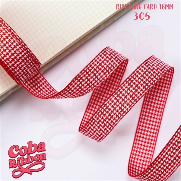 Rộng 16mm - Màu A305 - Ruy băng Caro cao cấp