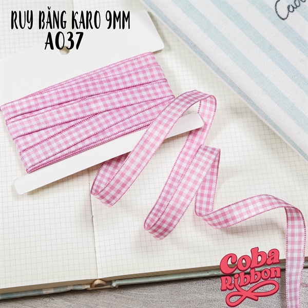 Rộng 9mm - Màu A037 - Ruy băng Caro cao cấp