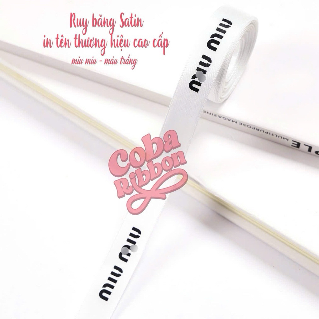 5 mét - Dây ruy băng satin rộng 1.6cm cao cấp mềm mướt in hoạ tiết Chan€L, Pr@da, Djor, Mjumiu