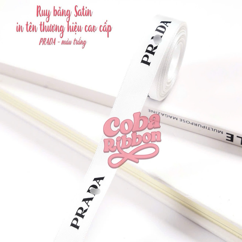 5 mét - Dây ruy băng satin rộng 1.6cm cao cấp mềm mướt in hoạ tiết Chan€L, Pr@da, Djor, Mjumiu