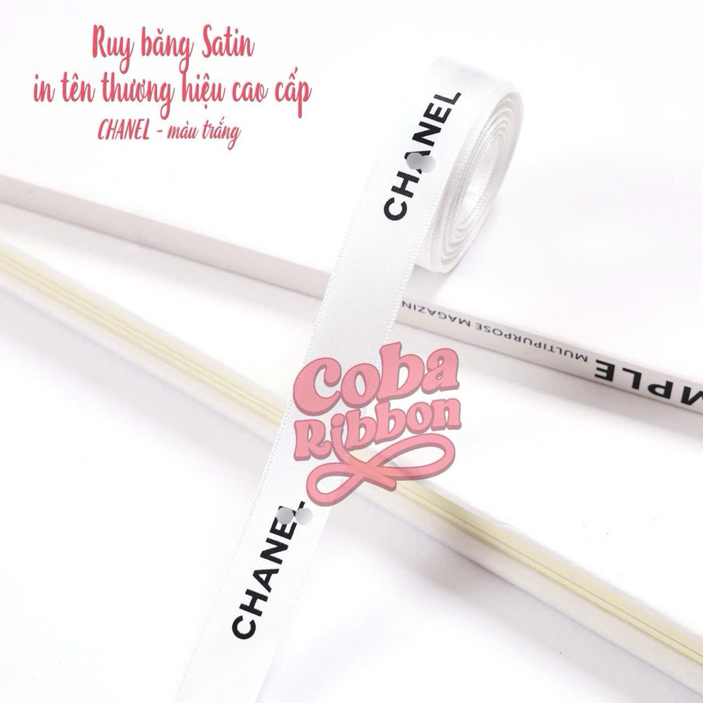 5 mét - Dây ruy băng satin rộng 1.6cm cao cấp mềm mướt in hoạ tiết Chan€L, Pr@da, Djor, Mjumiu