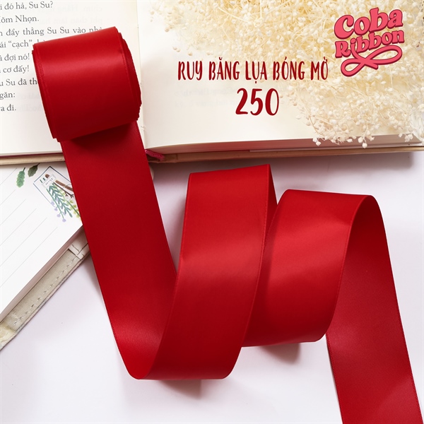 Rộng 25mm - Màu 250 - Ruy băng lụa bóng mờ, chất mỏng mướt